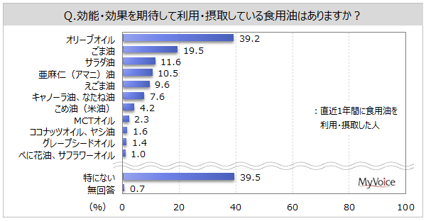 効能・効果を期待して利用している食用油