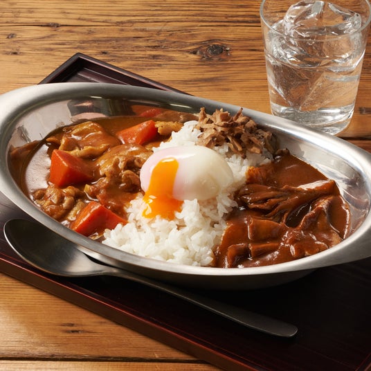 秋田県名物「神代カレー」を再現。「しょっつる」が隠し味の昔懐かしいカレーとデミグラスが香る欧風カレーをあいがけにしました。トッピングの温泉たまごといぶりがっこが、絶妙な旨みと食感をプラス。一皿で新旧の味わいが楽しめます。