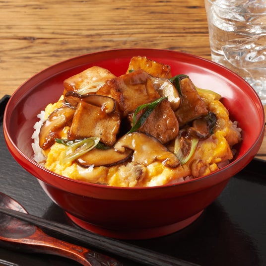 岡山名物「えびめし」を丼にアレンジ。ソースの香ばしさに黒糖のコクを効かせた、深みのある甘辛味がクセになります。海老といかの旨みが染みたごはんに、ふんわり卵が好相性。見た目も味もインパクトのある、まさにやみつきの一杯です。