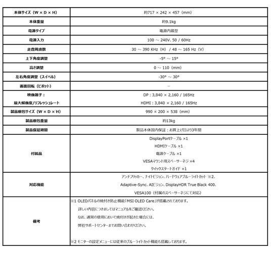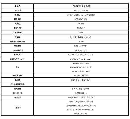 製品ページ: https://jp.msi.com/Monitor/MAG-321UP-QD-OLED