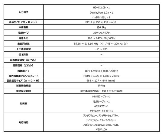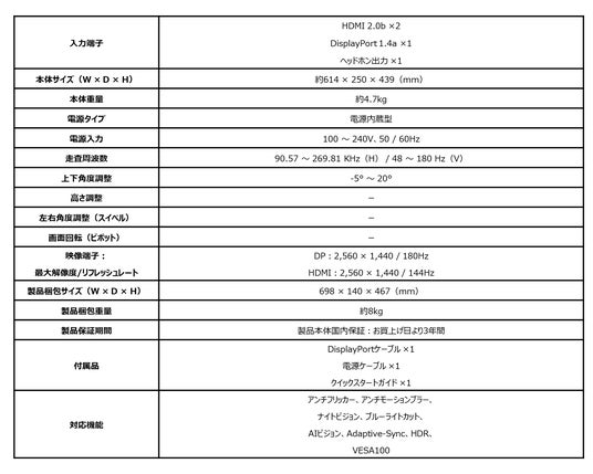 3機種共通の機能として、映像シーンに合わせて画面の明るさ・コントラスト・彩度を自動で調整するAIビジョン、Adaptive-Sync、モニターアームなどに取り付け可能なVESA規格にも対応しています。