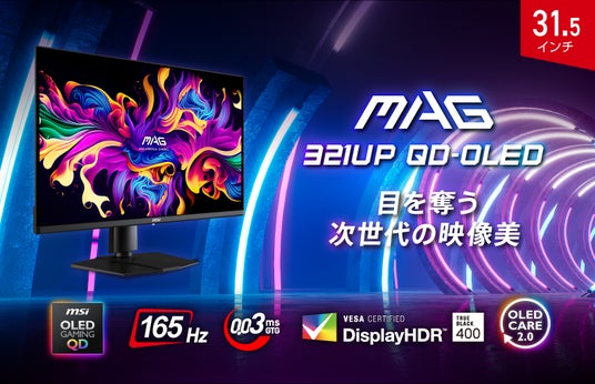 この度、エムエスアイコンピュータージャパン株式会社は2025年4月25日(金)より、ゲーミングモニターの新モデルを発売いたします。高いゲーミング性能とコストパフォーマンスに優れた『MAG』シリーズから、次世代の映像美を体験できるQD-OLEDパネルを搭載し、31.5インチ4K UHD、リフレッシュレート165Hz・応答速度0.03ms(GTG)の高いゲーミングスペックを誇る「MAG 321UP QD-OLED」、高精細な映像でゲームが楽しめる27インチWQHD解像度、RAPID IPSパネル、リフレッシュレート180Hz、応答速度0.5ms(GTG、最小値)の「MAG 274QF」、初めてのゲーミングモニターにお勧めな27インチフルHD解像度、フレッシュレート200Hz、応答速度0.5ms(GTG、最小値)の「MAG 274F」が新たにラインナップに加わります。