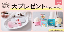 豪華賞品が当たるプレゼントキャンペーンを開催。第1弾は、アカチャンホンポ商品券や、たまひよ絵本セットなどが合計400名様に当たります。