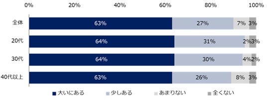 転職活動をする上で不安があるかを伺うと、63%が「大いにある」、27%が「少しある」と回答。計90%が不安を抱えていることが分かりました。年代別では、20代が計95%(大いにある:64%、少しある:31%)と最多になりましたが、30代は94%(大いにある:64%、少しある:30%)、40代以上は89%(大いにある:63%、少しある:26%)と大きな差は見られませんでした。