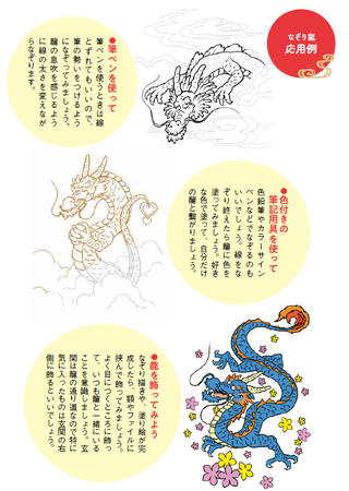 そんな龍を手軽になぞって描けるのが本書の特徴。なぞり絵のベースを描くのは、神田明神に奉納された龍の屏風絵「双龍図屏風」の作者であり、龍を呼ぶ画家として注目を集める絵獅匡氏。