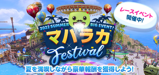 「マハラカフェスティバル」は約1か月おきに変わるアトラクションをプレイして豪華アイテムを交換することができるイベントになっております。現在はナルニという生き物に変身してチームで競う「マハラカレーシング」が開催中です。