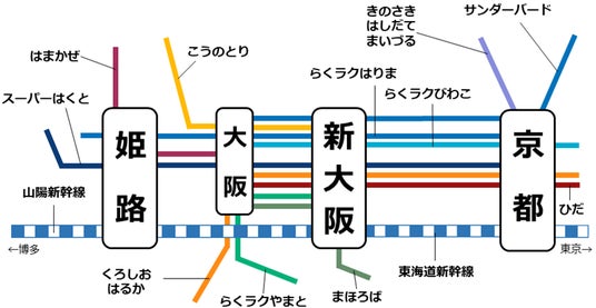 在来線特急:姫路駅・新大阪駅・京都駅発着の区間
