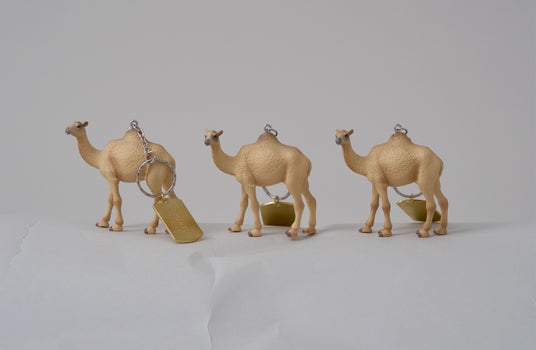 トートバッグやお持ちのバッグに付けて楽しめるラクダのバッグチャーム。PIMENTEのロゴが入った金のプレート付きです。