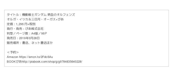 今月3月28日、ぴあ株式会社より、『機動戦士ガンダム 鉄血のオルフェンズ オルガ・イツカ&三日月・オーガス×ぴあ』が発売。本日よりアニメイトの予約購入特典が決定しました。
