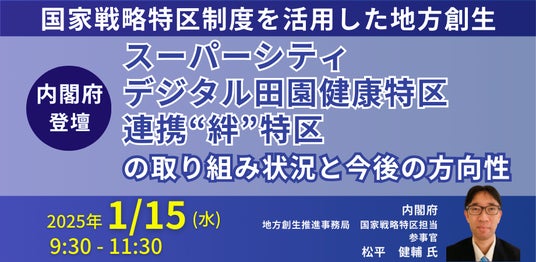 JPI(日本計画研究所)は、内閣府 地方創生推進事務局 国家戦略特区担当 参事官 松平 健輔 氏を招聘し、スーパーシティ・デジタル田園健康特区・連携“絆”特区の 取り組み状況と今後の方向性について詳説いただくセミナーを開催します。