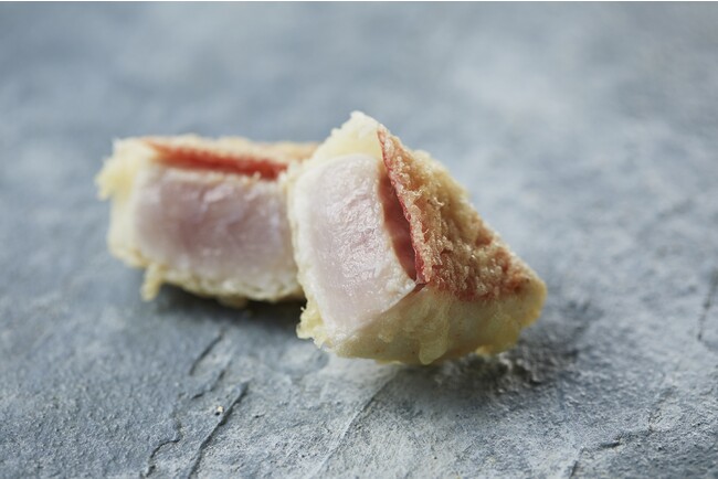 また食材は、料理長を務める小島太典が京都を中心に生産者のもとへ足を運び、自身の目利きで仕入れる野菜や、瀬戸内・若狭・駿河でとれた新鮮な魚介などを中心に使用しています。シグネチャーメニューである「近江牛フィレ肉紫蘇巻」や「卵黄の天麩羅」に加え、「駿河湾の金目鯛の天麩羅」「丹波栗の渋皮煮の天麩羅」「霞ヶ浦武井農園の蓮根の天麩羅」など、他店では味わうことのできないメニューにも積極的に取り組んでいます。