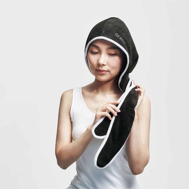 吸水性の高いマイクロファイバー素材で素早く髪の水分を吸収し、ドライヤーにかける時間を短縮します。