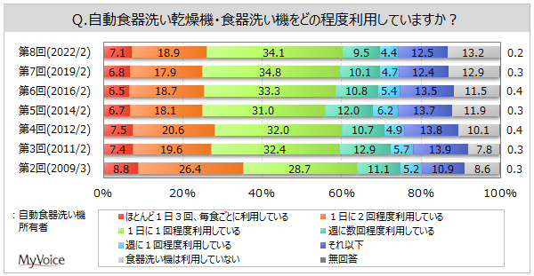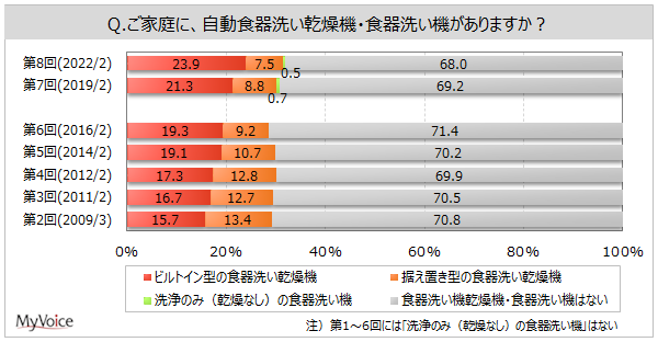 マイボイスコム株式会社(東京都千代田区、代表取締役社長:高井和久)は、インターネット調査を中心に提供している伊藤忠グループのリサーチ会社です。この度、8回目となる『自動食器洗い機』に関するインターネット調査を2022年2月1日~5日に実施し、10,135件の回答を集めました。調査結果をお知らせします。