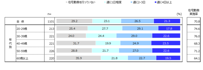さらに、緊急事態宣言解除後(10月~)は全体で70.8%に減少し、「行っていない」が29.2%と大幅に増加するなど、出社勤務への回帰が顕著となった。