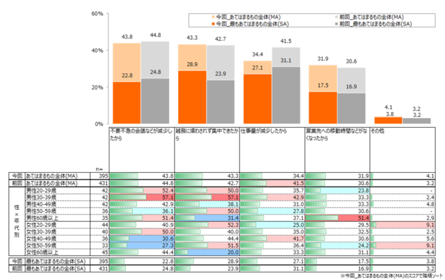 最も当てはまる理由(単回答)は、今回は「雑務に煩わされず集中できたから(28.9%)」が1位となった。