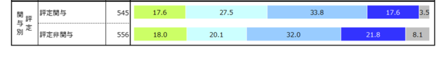 評定関与者と非関与者を比較すると、前回同様いずれも「週に2-3日」が最多だが、評定関与者は非関与者に比べて「週に1日程度」が多く、「週に4日以上」が少ない傾向があり、出社勤務を望む傾向が強い。
