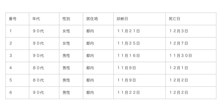 都内で新型コロナウイルスに感染した方が死亡されましたのでお知らせします。