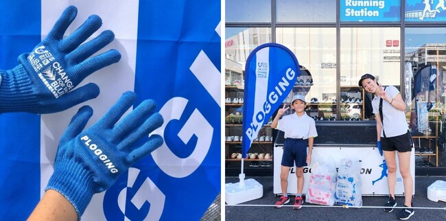 オープニングイベントに参加してくださったご家族が、イベント期間中にCHANGE FOR THE BLUEオリジナルグローブとポロシャツを身につけて2回目のプロギングにチャレンジしてくださいました。出発から1時間後、袋いっぱいに素敵な笑顔でプロギングステーションに戻られました。