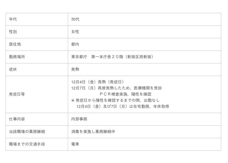 東京都産業労働局に所属する職員1名が、新型コロナウイルスに感染したことが確認されたので、以下のとおり、お知らせします。