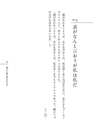 ◆人前に立つことが多いためリーダーとして知っておくべきことを学ぼうと思い、この本を手に取りました。訳が美しく、自然と自分の中に言葉が入っていくのが心地良かったです。また自分を叱り、正してくれる言葉がたくさんあり、これからの人生がより豊かになりそうです。(10代女性)