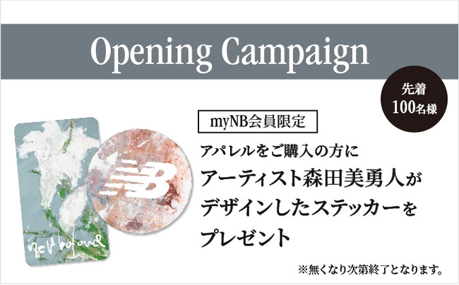 グランドオープンを記念し、特別販売商品やmyNB会員様向けのオープニングキャンペーンのご用意や、アーティスト森田美勇人の作品を期間限定で展示いたします。