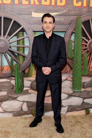 6月13日にニューヨークで開催された、映画『ASTEROID CITY (原題)』のプレミアに出席したジェイク・ライアン。キム・ジョーンズによる、ディオールのメンズ コレクションより、ネイビーウールのノッチラペルスーツにブラックコットンシャツとブラックレザーのダービーシューズを合わせた装いで登場しました。
