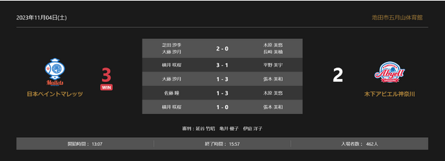 2023-11-04 一般社団法人Tリーグ ノジマTリーグ 2023-2024シーズン 公式戦 11月4日開催 日本ペイントマレッツ vs 木下アビエル神奈川 試合結果 Tweet ノジマTリーグ 2023-2024シーズン 公式戦 11月4日開催の「日本ペイントマレッツ vs 木下アビエル神奈川」の試合は、3-2で日本ペイントマレッツが勝利しました。 企業プレスリリース詳細へ PR TIMESトップへ 公式ツイッター Follow @Straightpress 最新情報をTwitterで受け取ろう! 公式フェイスブックページ 最新情報をFacebookで受け取ろう! 前の記事 一覧へ戻る 次の記事