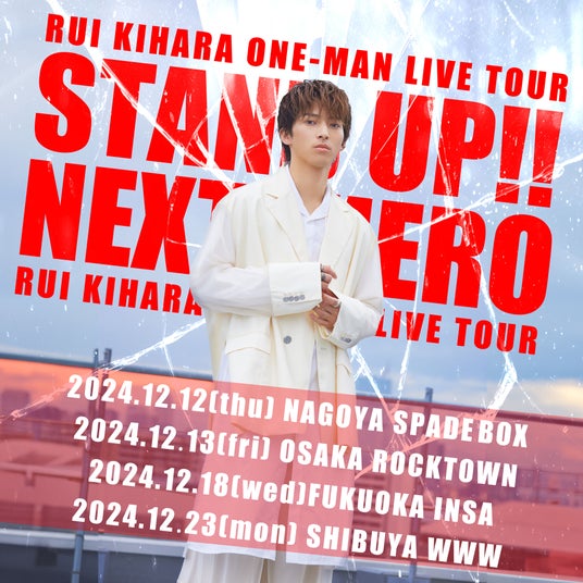 ミュージカル『刀剣乱舞』にて”へし切長谷部”を好演、今年は『ROCK MUSICAL BLEACH』”黒崎一護”で主演を務め、東宝ミュージカルにも挑戦し、ミュージカル界での活躍が期待されている木原瑠生。今月開催するライブハウスツアー【RUI KIHARA ONE MAN LIVE TOUR STAND UP!!】は既に情報解禁していた東京大阪名古屋に加えて福岡を追加公演に加えたが全公演ソールドアウトとなった。