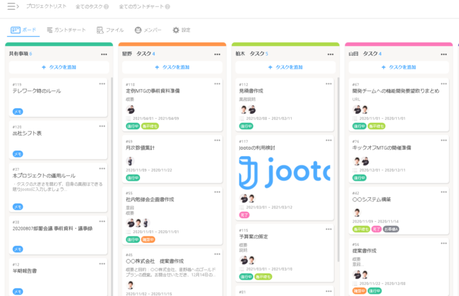 Jootoは、クラウド型のタスク・プロジェクト管理ツールです。『誰でも、簡単に、直感的に使えるツール』として、シンプルでユーザーフレンドリーなインターフェースを特長とし、チームにおける業務・案件・プロジェクト管理や情報共有をスムーズにします。
