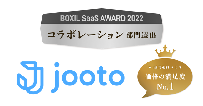 ユーザーからの口コミや評価を元に、注目度が高いSaaSを表彰する「BOXIL SaaS AWARD 2022」にて、当社が運営するタスク・プロジェクト管理ツール「Jooto」がコラボレーション部門を受賞しました。コラボレーション部門は、グループウェアやビジネスチャット、プロジェクト管理・工数管理をはじめとする業務効率化をサポートするサービスが属する部門です。また、同部門内のベスト評価賞として価格の満足度No.1も受賞いたしました。