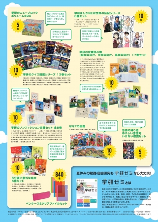 今回のプレゼントは「たっぷり遊んで、たっぷり学ぼう!!」をコンセプトに、家に届いたときに驚いてしまうくらいボリュームがあり、かつインパクトが強いもの(=たっぷり感があるもの)を選定。お子さまひとりでは持ち運べない(?)くらいの重量の『学研の図鑑 LIVE』既刊15冊セット、『なぜ?の図鑑』6冊セット、『学研のクイズ図鑑シリーズ』13巻セットなどの図鑑コレクションを皮切りに、『学研まんがNEW日本の歴史』『~世界の歴史』も別冊2冊をつけた全14巻をセット、さらに読書感想文にも最適な『学研まんがNEW世界の伝記シリーズ(6巻セット)』『学研の定番読み物セット(17巻セット)』『学研のノンフィクション定番セット(8巻セット)』と、とにかく、ボリュームにこだわったラインナップを用意いたしました。これらの本が本棚に並んだ姿はかなりの壮観でしょう。担当者も「プレゼントの総重量は…1tはないけど500kgはあるのでは。このボリューム感の本をこれだけの人数にプレゼントする企画は初めて」というほどの一大企画。他にもタブレット端末や商品券など夏休みの生活に役立つものもプレゼントには入っています。