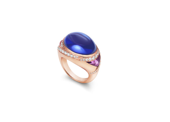 2023年3月12日(Beverly Hills, CA) – ヴァニティ・フェア主催のオスカーパーティーにてセレブリティたちがブルガリを纏いました。ブルガリのアンバサダーでありメキシコ出身の女優、エイザ・ゴンザレスは、アメシスト、タンザナイト、アクアマリンがあしらわれた計92カラットにおよぶハイジュエリーのネックレスに、同じくハイジュエリーのタンザナイトのリングを合わせました。