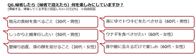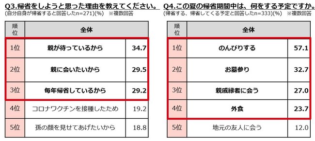 ・帰省の理由は「親が待っている」「親に会いたい」「毎年帰省している」がTOP3。