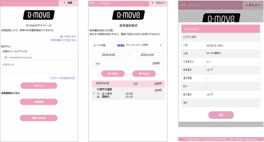 QUADRACのQ-moveサイトにアクセスし、「マイページ」の会員登録手続きが完了しますと確認可能です。