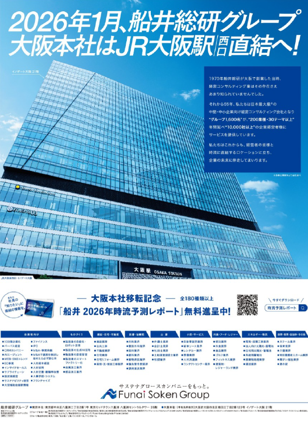船井総研グループは大阪本社を移転いたしました(2026年1月7日より適用)