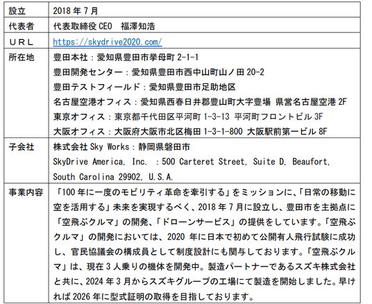 ◯東日本旅客鉄道株式会社(本社:東京都渋谷区、代表取締役社長:喜㔟 陽一、以下「JR 東日本」)は、「空飛ぶクルマ」の開発を行う株式会社SkyDrive(本社:愛知県豊田市、代表取締役CEO:福澤 知浩、以下「SkyDrive」)へ2025年5月2日に出資しました。