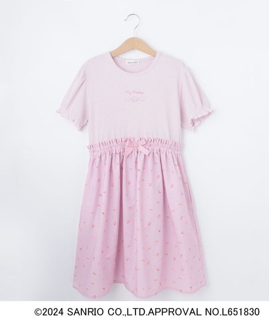 ▪デザイン:トップス部分にはサンリオのキャラクターをさりげなく取り入れ、ボトム部分にはキャラクターの総柄プリント生地を使用したドッキングワンピース。1枚に魅力がぎゅっと詰まった異素材ドッキングのデザインは、キャラクター好きなお子さまにぴったりです。
