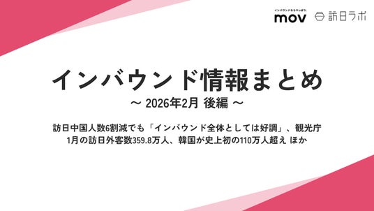 業界最大級のインバウンドビジネスメディア「訪日ラボ」及び 店舗向け集客一元化プラットフォーム「口コミコム」を運営する株式会社mov(代表取締役:渡邊 誠、本社:東京都渋谷区、以下mov)は、「インバウンドに関する最新トレンド・データ」「政府・自治体・企業などのインバウンド関連の取り組み」をはじめ、インバウンド対策に役立つニュースをまとめた「インバウンド情報まとめ【2026年2月後編】」を公開しました。
