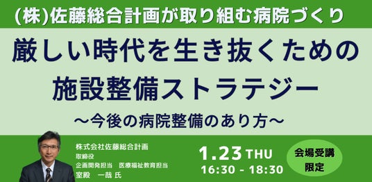 室殿 一哉 氏を招聘し、佐藤総合計画が取り組む病院づくりについて詳説いただくセミナーを開催します。