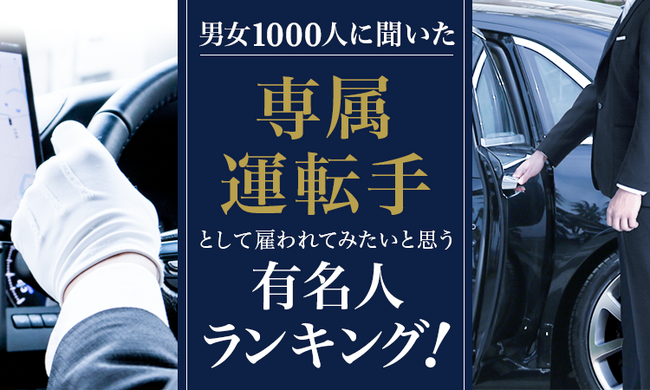 そこで今回は、役員運転手派遣・社長秘書派遣の「株式会社トランスアクト」と共同で、全国の男女1000名を対象に、「専属運転手として雇われたい芸能人」についてのアンケートをおこないました。