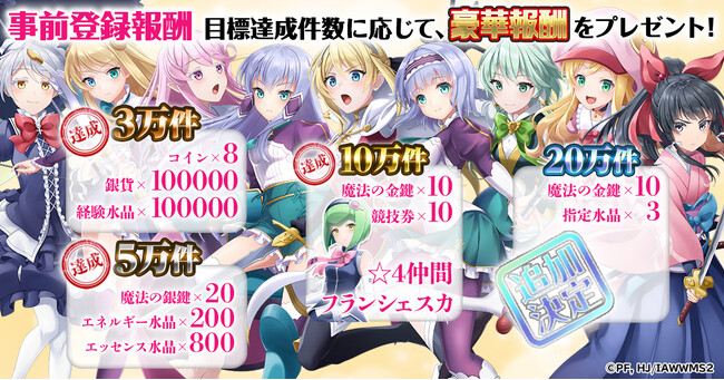 CTW株式会社は、事前登録受付中のG123最新ゲーム「異世界はスマートフォンとともに。ハピネスクレイドル」にて事前登録件数が10万件を達成し、追加報酬が決定したことをお知らせします。