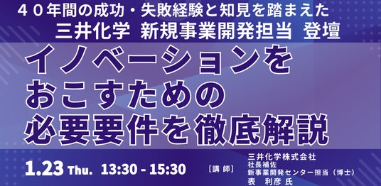 JPI(日本計画研究所)は、三井化学株式会社 社長補佐 新事業開発センター担当(博士) 表 利彦 氏を招聘し、イノベーションをおこすための必要要件について詳説いただくセミナーを開催します。