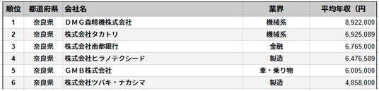 株式会社SalesNow(本社:東京都渋谷区、代表取締役:村岡功規、以下「当社」)は、国内540万社の企業情報を完全網羅した日本最大級のデータベース「SalesNow DB」より、上場企業を対象に奈良県に本社を置く企業の平均年収データを集計・分析し、「平均年収ランキング」として公開いたしました。