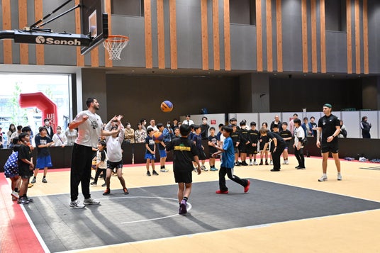 JR宇都宮駅東口を出てすぐ、「宮みらいライトヒル」「ライトキューブ宇都宮」でも、大会と同期間中に3x3関連イベントを開催いたしました。1階の交流広場では、昨年国際バスケットボール連盟FIBAより寄贈された、「UTSUNOMIYA」と大きく表示され、宇都宮市のシンボルカラーであるイエローにアレンジされたコートを設置。4月25日(金)には、そのコート上で、「3x3 Fan Fest」として、翌4月26日(土)から開催の『FIBA 3x3 World Tour Utsunomiya Opener 2025』に出場する4チームが子供たちと交流。加えて、U-12世代を対象とした「3x3 Jr CUP」、日本最高峰の3x3プロリーグ「3x3.EXE PREMIER」の2025シーズンの女子開幕戦、World Tour本戦の「パブリックビューイング」など、さまざまな関連イベントが行われました。