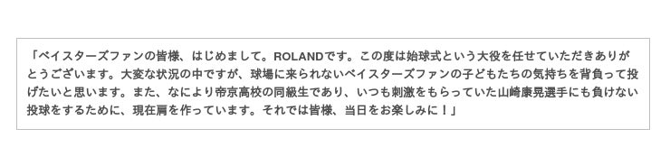 ※ROLANDご本人の動画メッセージは9月4日(金)24:00より