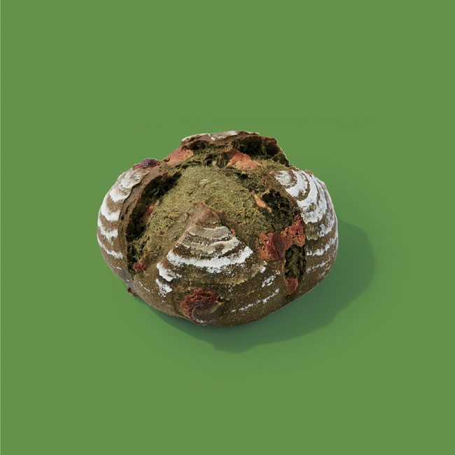 定番のカンパーニュに抹茶を練り込み、ホワイトチョコのアクセントを加え、焼上げました。