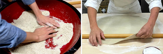 体験で使用する蕎麦粉は、福岡の名店「十割蕎麦かぜのたみ」の店主である長友氏が挽いた厳選福岡県産十割蕎麦粉です。ホテルの料理人が一から丁寧にご指導いたしますので、初心者の方やお子様でもお気軽に安心して蕎麦打ちを体験することができます。ご自身で打った特別な蕎麦は、ホテル内のカフェにてその場で召し上がることができます。ご家族やご友人、恋人との思い出づくりやお子様の夏休みの自由研究にぜひプランをご利用ください。