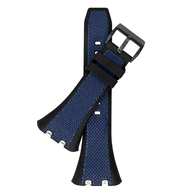 イタリアンレザー・再生ファブリックと再生シリコンをそれぞれ圧着した2本のストラップが付属します。