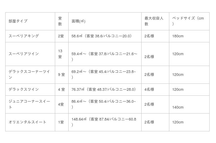<エグゼクティブルーム ルームタイプ一覧>