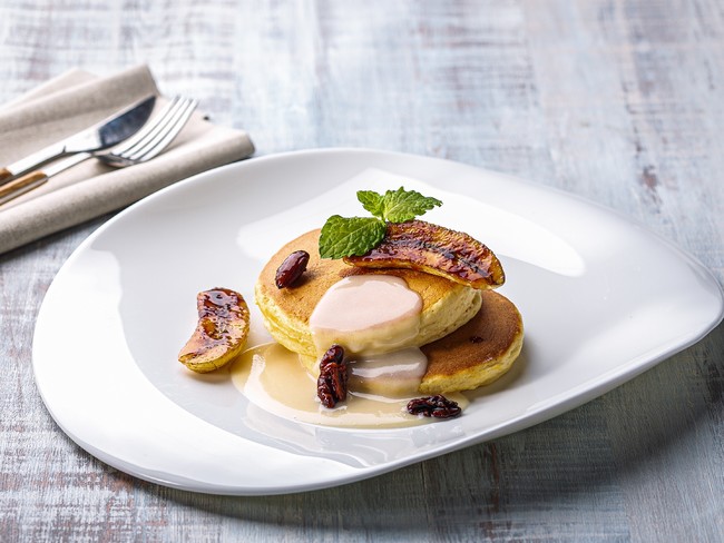 パンケーキクワトロチーズソース キャラメルナッツ プロシュート